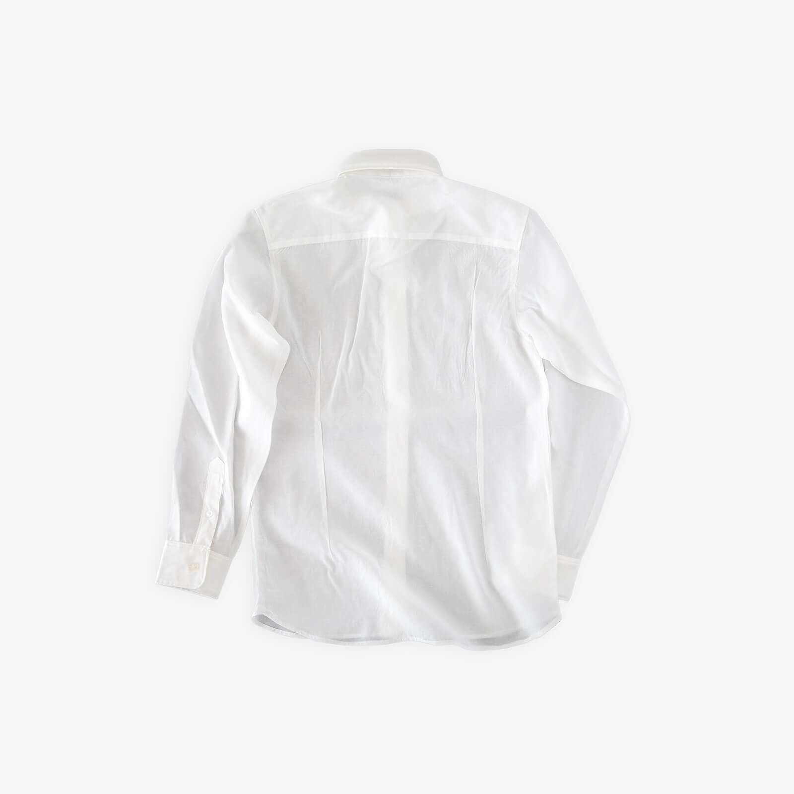 衿とカフスがボディと同色異素材のシャツ。