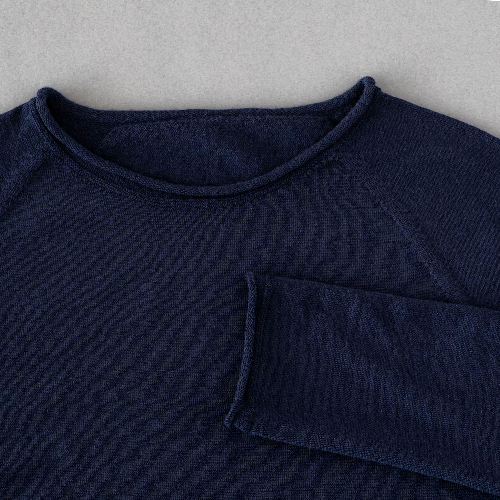 通常は単糸・双糸という撚り方の糸を、みっこという3つの糸を撚っている素材です。軽くて温かいです。
